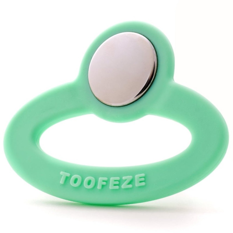 Simply the coolest baby teether ever. What makes Toofeze so cool? Toofeze chills instantly in cold water to ease pain fast. Like a teaspoon with a baby-safe handle, toofeze is simply a new twist on an age-old teething remedy. All-natural food-grade ingredients meet the high standards of today’s health- and eco-conscious families. The stainless steel disk satisfies babies’ innate craving for cold, smooth objects. Its shiny surface creates a diversion that helps babies discover and admire their own reflection. The soft silicone handle has a smooth surface for firm even counter-pressure and a textured surface for gentle gum massage. Its compact stationary design encourages early motor skills development without frustration.