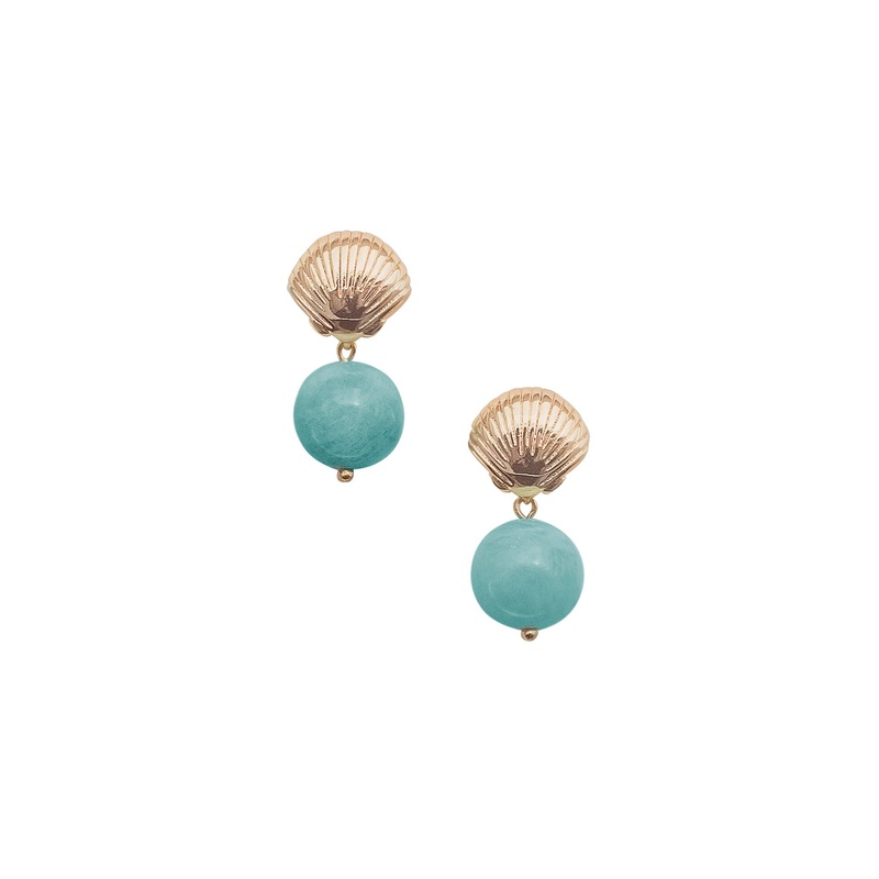 From Newport, Rhode Island, designer Kerry McGauley uses her experience in the fashion industry and inspiration fromthe towns picturesque shoreline to craft singular yet timeless piecesshining at the most special events and through your everyday. The amazonite gemstones dangling from theTori Earrings in Blue/Green carry a retro quality, framing your facewith unstated glamour andeffortless grace.