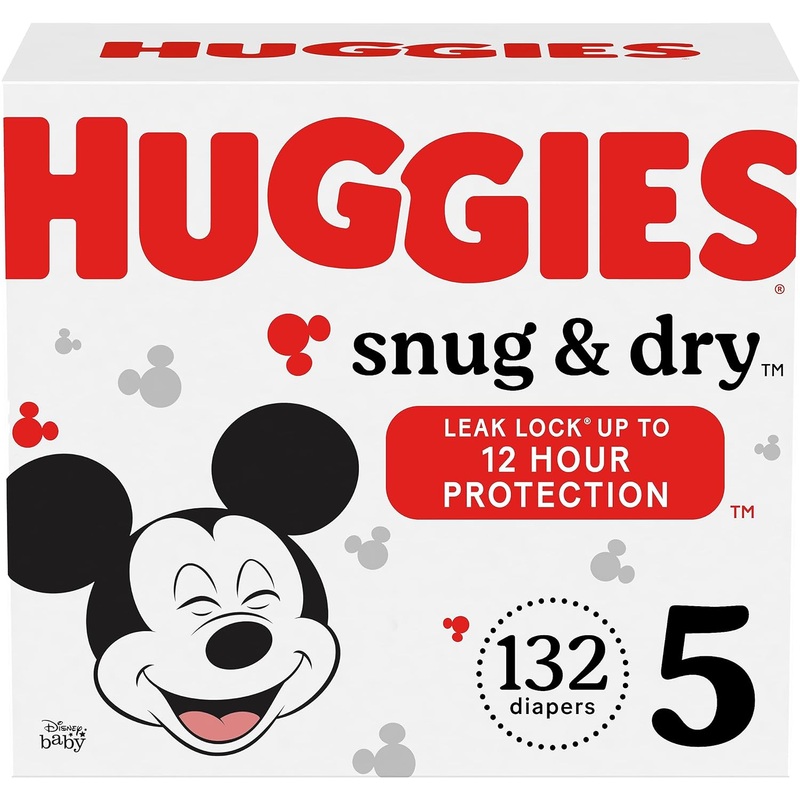 Huggies Size 5 Diapers, Snug Dry Baby Diapers, Size 5 (27+ lbs), 132 Count Give your baby day and night protection with Huggies Snug Dry Baby Diapers. Huggies Snug Dry Baby Diapers features Huggies' Leak Lock Protection, giving your baby up to 12 hours of