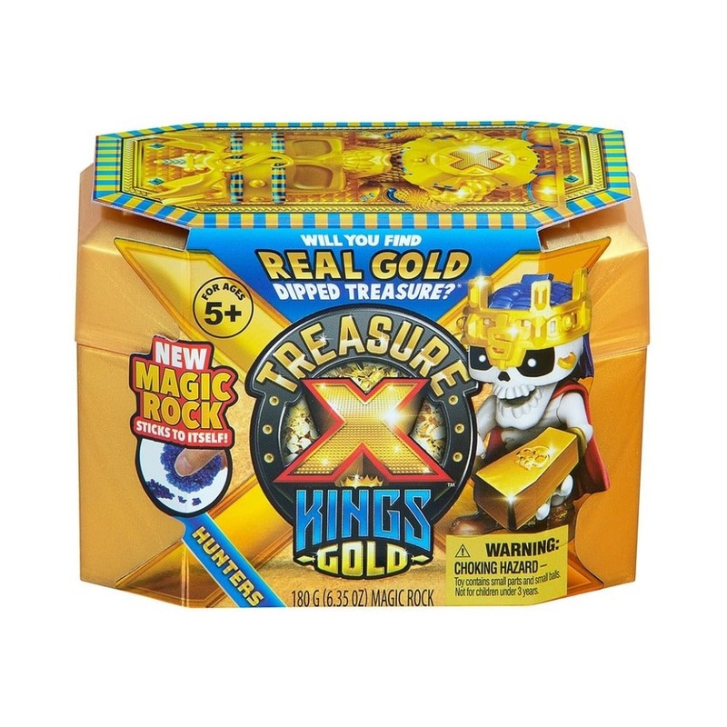 Age : 5 Year+ The search for Real Gold Dipped Treasure continues in Treasure X King's Gold - Hunter Pack! Smash, Dig, Unwrap and discover each of the new reveal experiences including a new smash layer and reusable magic rock! Begin the quest by finding the