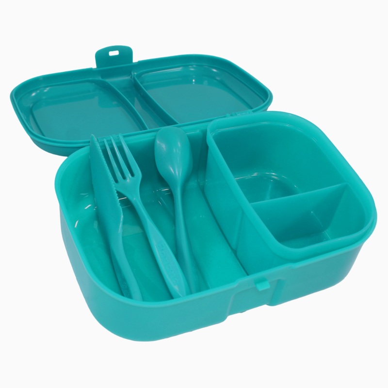 1.8L capacity with divided compartmentsKeeps food separate and freshEasy-open coverIdeal for school lunches or picnics3-piece cutlery set