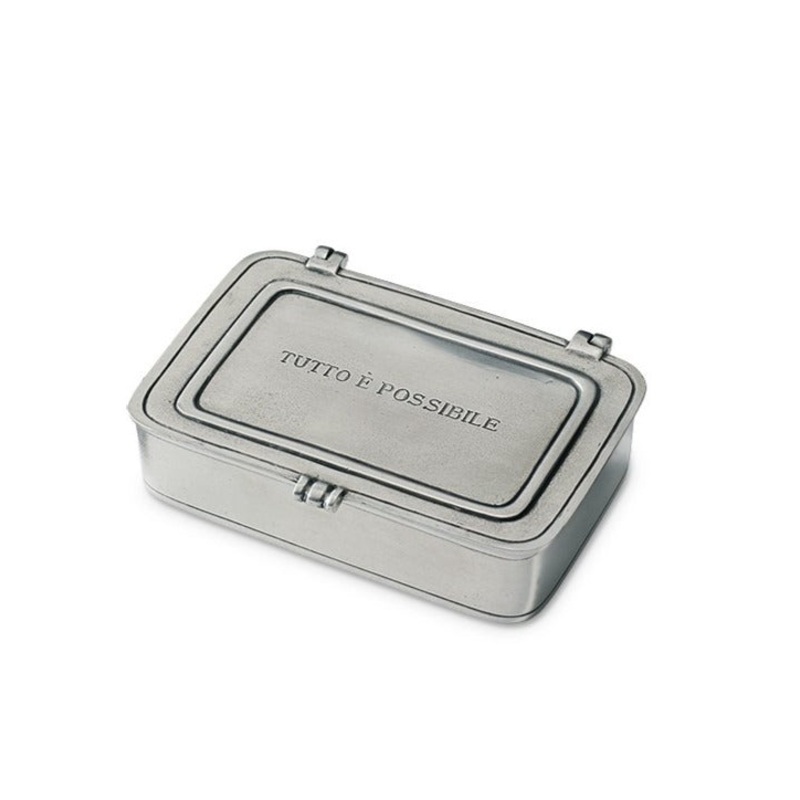 "Anything is possible" thanks to this inscribed trinket box that can hold everything from delicate jewelry to loose change. A must-have for the ultimate hostess, MATCH pewtera valuable metal composed of tin, copper, and antimonyis handmade by artisans in N