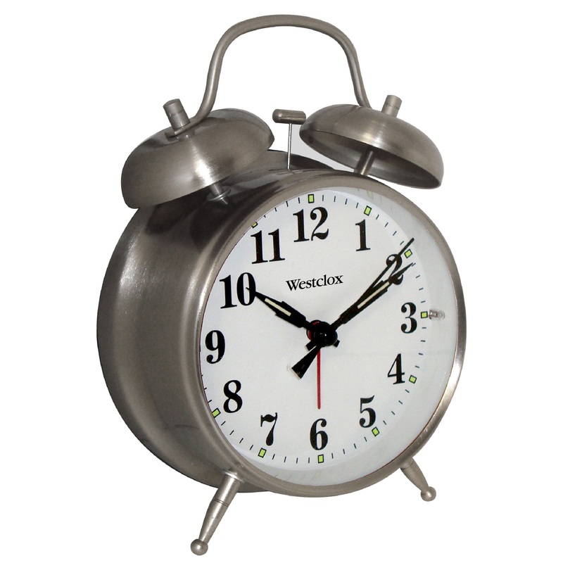 You're sure to awaken on time with this twin bell alarm clock from Westclox. With classic styling, a metal case, and quartz accuracy, the clock has a retro look, but the battery-powered alarm and clock light are standard modern features. The loud alarm com