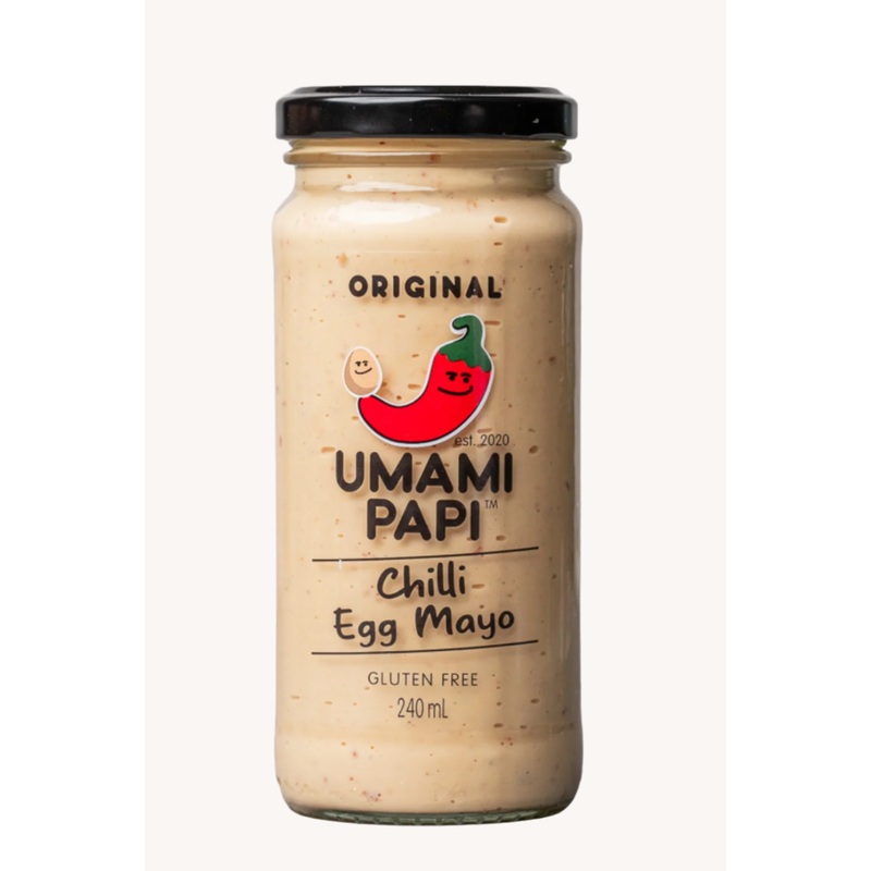 INTRODUCING UMAMIPAPI CHILLI EGG MAYO!100% gluten free. Worldwide shipping.Your mayo game just levelled up. Our brand new Chilli Egg Mayo, crafted from a blend of our signature UmamiPapi Chilli Oil and creamy egg mayo is a natural extension of the UmamiPap