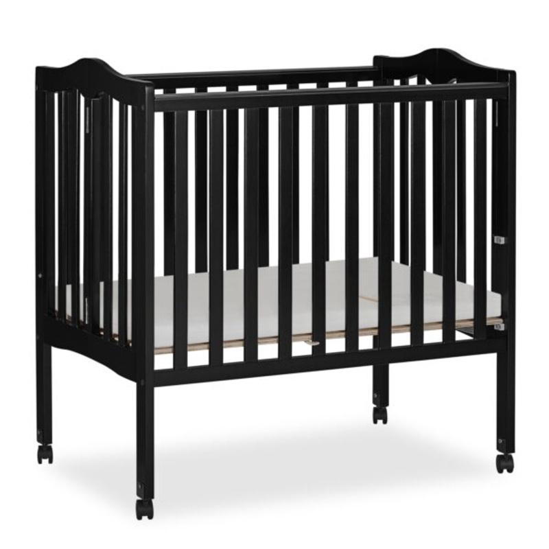 Dream On Me 2-in-1 Lightweight Folding Portable Crib, Black The Dream On Me 2-in-1 Lightweight Portable Folding Crib features unique hinges that allow the crib to fold flat for compact storage or travel. The stationary rail design provides the utmost in pr