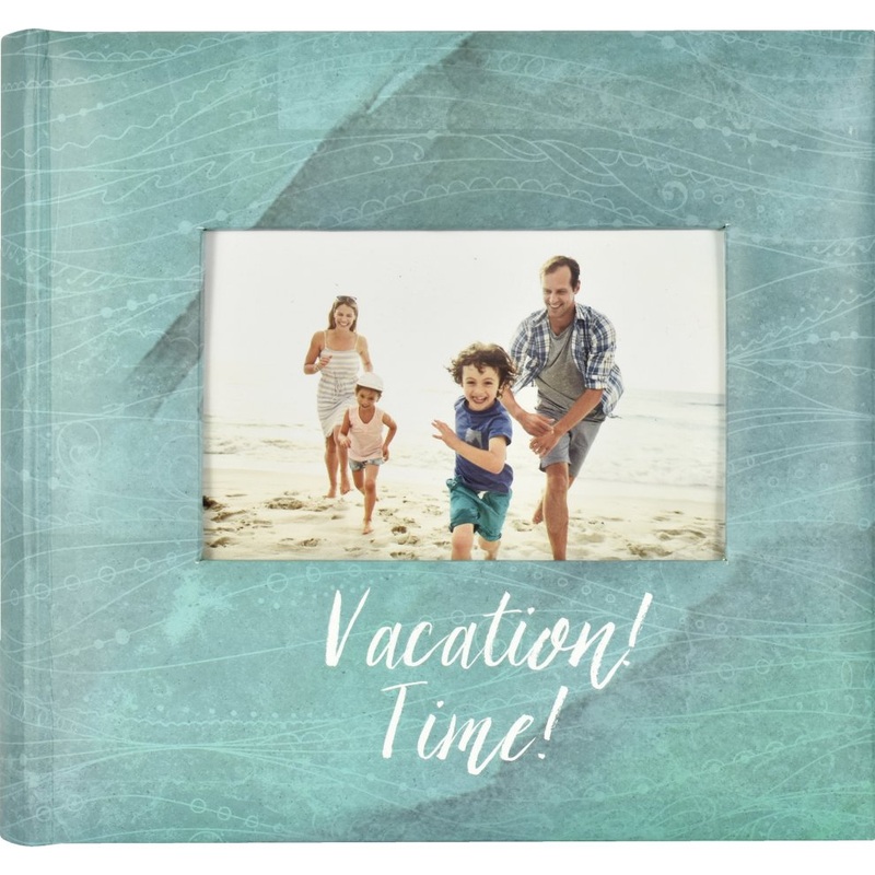 Showcase your travel photos in this Vacation Time Photo Album 860160. The cover features an abstract aqua design with a photo frame and the words "Vacation Time" in white lettering.Book boundDust jacket(200) 4x6 inch pockets (2 per page)2-inch wide journal