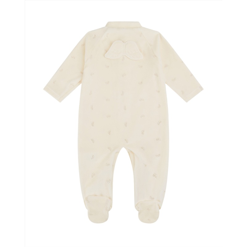 Princess Marie-Chantal of Greeces eponymous label is known internationally for its unmatched style and the quality of materialslike their organic, hand-picked Pima cottonwhich lies at the heart of their baby essentials and contemporary childrens clothing. Made from the softest cotton, the best-selling Velour Embroidered Angel Wing Sleepsuit in Cream features the beautiful signature Angel Wing. Designed with comfort and quality in mind to keep you little one cozy. Convenient popper fastenings make dressing and changing effortless, while the integrated feet keep tiny toes snug and warm.
