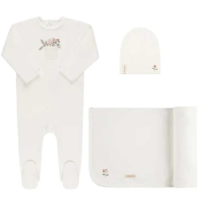 ENW11012198VELOUR POCKET FULL FLOWERS-IVORY/PINK-3 PC SET