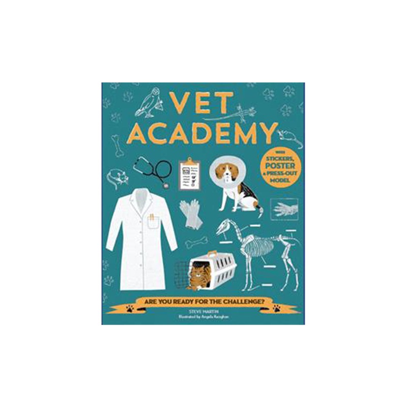 Packed full of fun, educational activities, Vet Academy lets children explore life as a veterinarian, from the rigorous training involved in learning about different kinds of animals to the importance of food, exercise and conservation. The book is broken up into sections — Pet Vet, Zoo Vet, and Farm Vet — and each section includes arts and crafts, puzzles and quizzes, plus tasks and missions. Everything from learning about dog body language to a day in the life of a zoo elephant (and her vet), to farm vet hygiene its all in here. Plus, theres also a pull-out poster, game, cards and sticker sheets to add to the interactive fun.Series: Academy SeriesThe academy series features activities, cool quizzes, and super skill tests. Stickers, model, poster, and games included. Whimsical art and creative fun for anywhere!