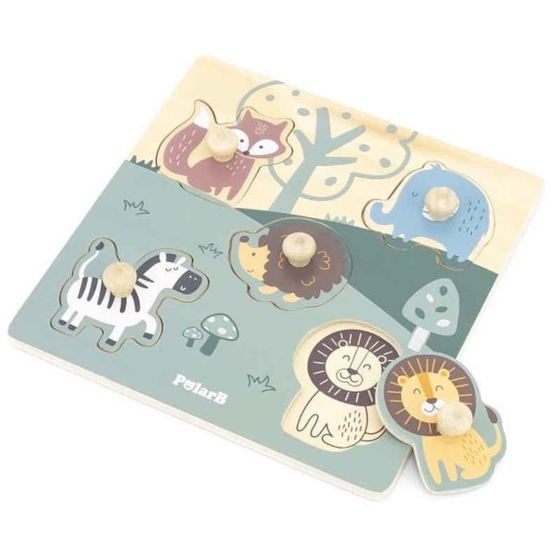A simple and endearing knob puzzle that features adorable wild animals. Perfect for toddlers to work on their pincer grip.