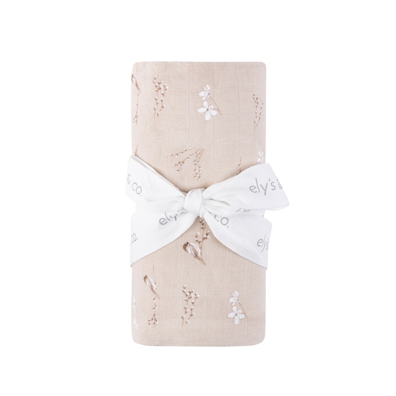 ENW11013532Vintage Birds- Tan – Bamboo Muslin Swaddle