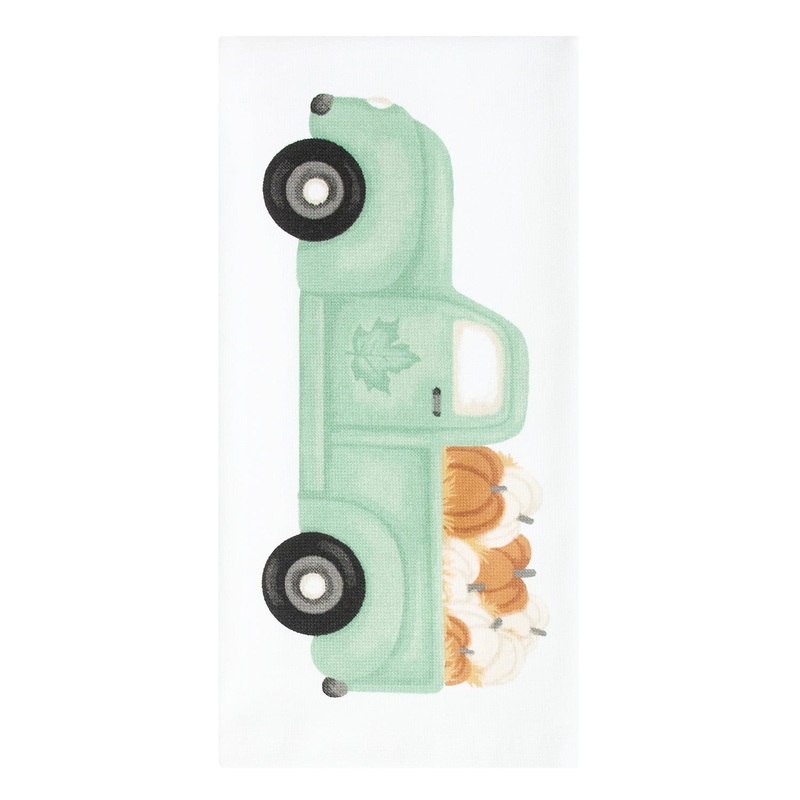 Celebrate fall with this Vintage Pumpkin Truck Kitchen Towel 13496. This cute tea towel is a great addition to any kitchen.100% cottonDual-sided kitchen tea towel