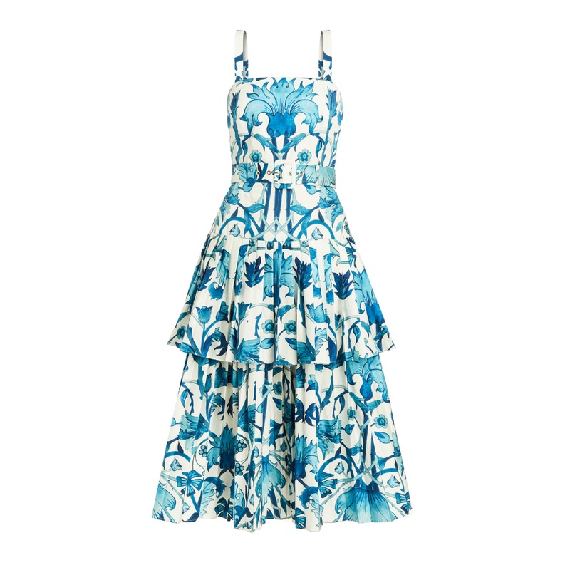 Welcome to the enchanting world of Mestiza New York, where heritage meets haute couture. Founded by Alessandra Perez-Rubio & Louisa Rechter Takacs, this brand is a tribute to their shared Filipino roots and the timeless elegance of their foremothers. Each piece, crafted with the highest quality to stand the test of time, will add polish to your wardrobe, and a touch of magic, too. The Virginie Convertible Midi Dress in Ivory/Navy Woven Azul gives you two looks in one as it changes from a tiered midi into a mini dress with its hidden zipper.