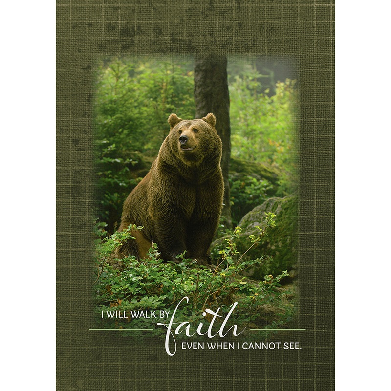 Curl up with this cozy Walk by Faith Fleece Throw. It's made of soft polyester fleece featuring a bear in the woods with a green background and the sentiment, "I will walk by faith even when I cannot see."50" x 70"Polyester fleece