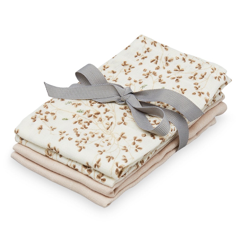 4-pack of soft Muslin Wash Cloths featuring 2 x 2 beautiful Cam Cam Copenhagen prints. Wash Cloth in white and brown shades.