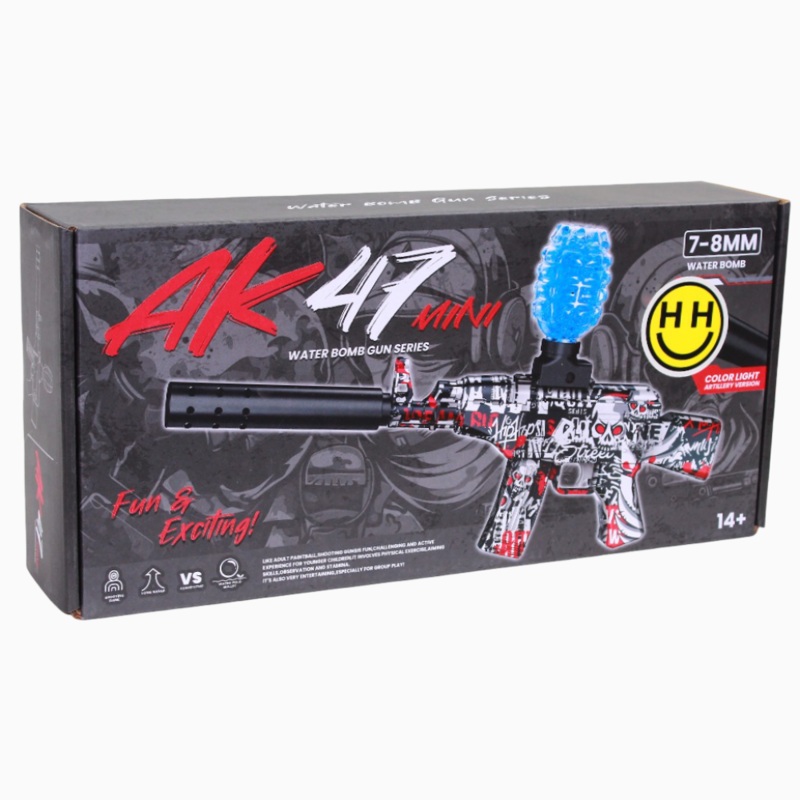 Big action in a mini size! This AK47-style water bead blaster brings high-energy fun to outdoor play, with a compact design that's easy for kids to handle.Key Features:Mini AK47-style design for exciting, realistic playUses water beads for safe, mess-free