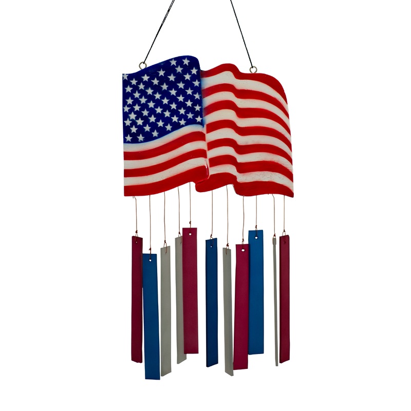 Waving American Flag Carving with Tumbled Glass Wind Chime