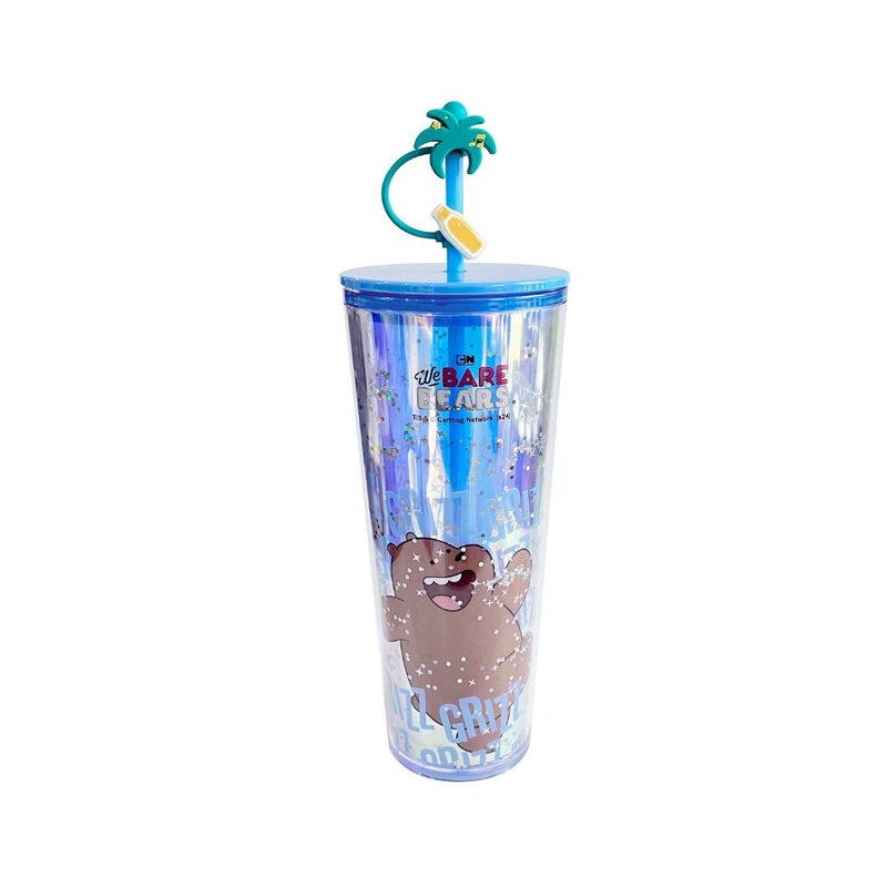 We Bare Bears Seaside Music Festival Double Wall Plastic Tumbler with Straw (800mL) (Grizz)