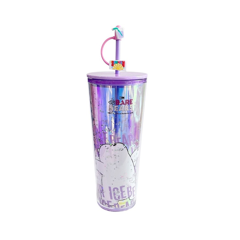 We Bare Bears Seaside Music Festival Double Wall Plastic Tumbler with Straw (800mL) (Ice Bear)Design: Features Ice Bear from We Bare Bears, showcasing a cool seaside music festival themeMaterial: Sturdy double-wall plastic that helps maintain your drinks t