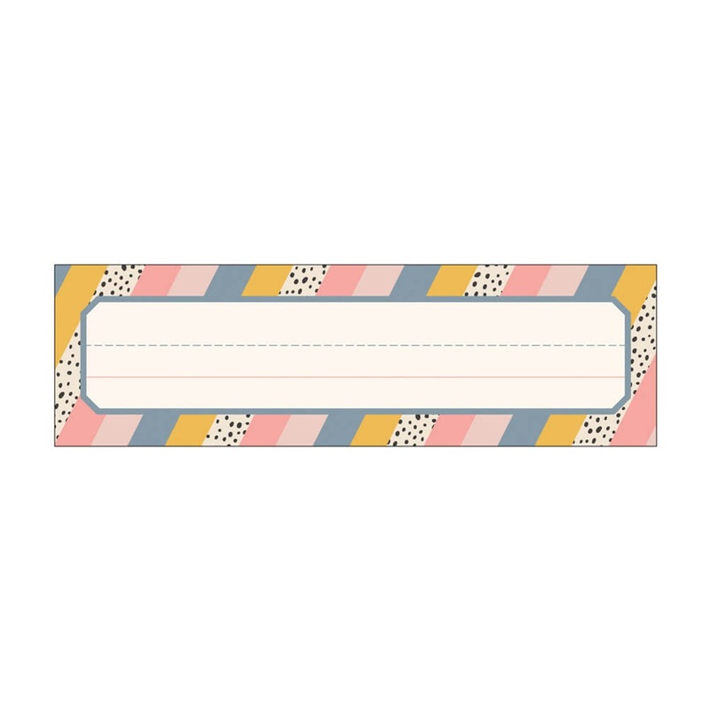 Add natural elements to your classroom supplies with Carson Dellosas We Belong Nameplates. Personalize students desks with nameplates that feature a writing space with soft stripes and black and white dots to add some style in your learning space.