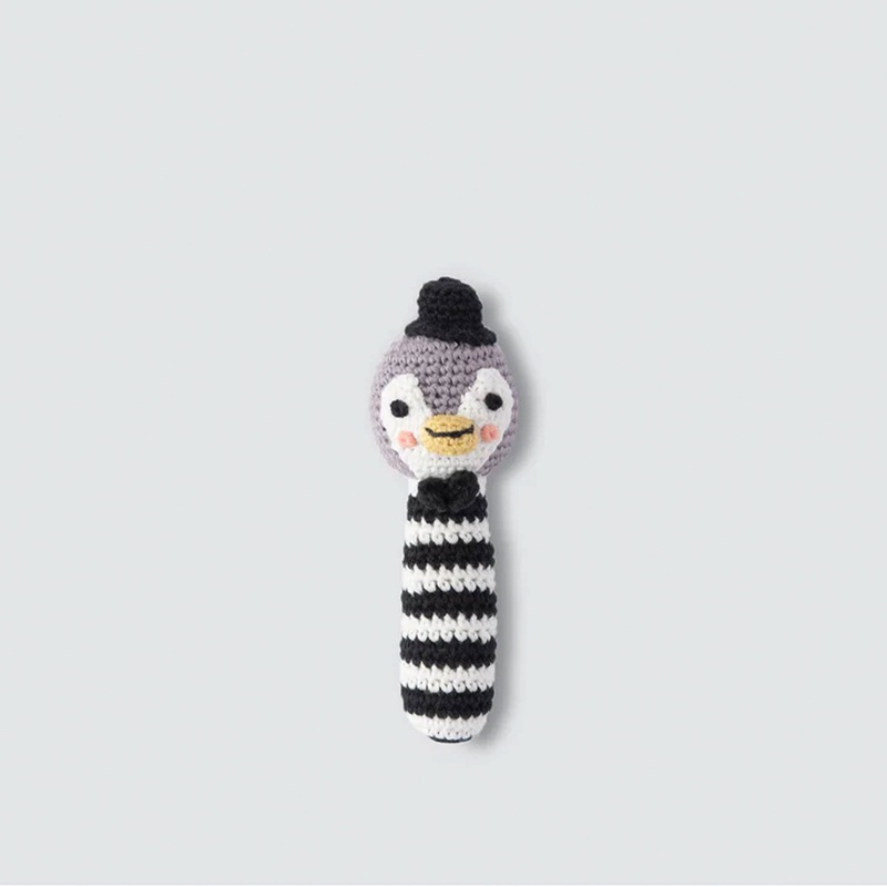 This Poppy Penguin Rattle is the perfect size rattle for teensy hands to grasp. It makes a novel newborn baby gift.FeaturesHandmade crochet rattleRattle size 13cmMachine washableTested to meet world standards