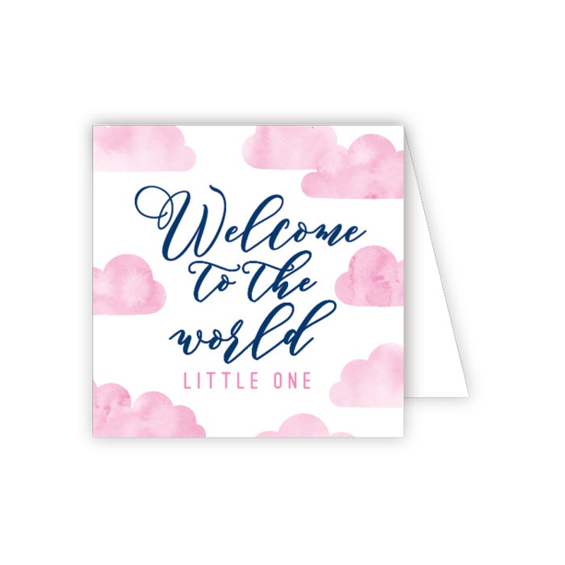 Welcome To The World Little One Pink Clouds Enclosure Card