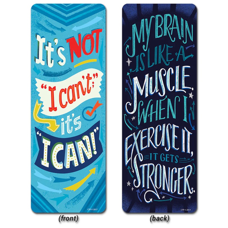 The positive phrases on these What’s Your Mindset? Motivational Quotes Bookmarks are a great way to inspire students to work hard and never give up. These bookmarks feature colorful designs and are perfect to use as classroom incentives, to support growth mindset lessons, or to use as giveaways to students of all ages. The inspirational messages on these will help students think positively about themselves, build self-confidence, and develop a growth mindset. Send a positive message about learning with fun bookmarks!