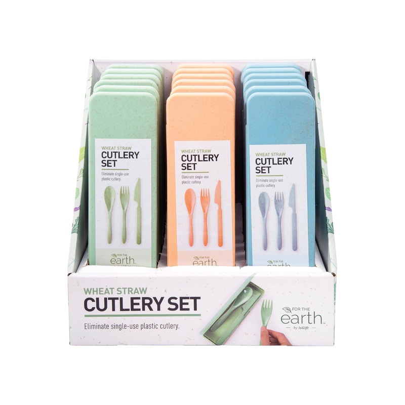 This set is made from a lightweight and durable blend of polypropylene and wheat straw, which is a waste product of wheat grain harvesting.