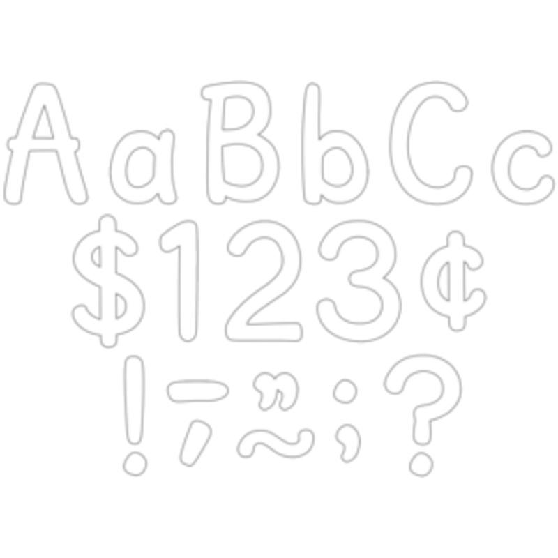 White 4 Inch Letters ComboDescriptionUse these contemporary, easy-to-read letters to create bulletin boards, classroom centers, signs, banners, and other displays. They punch out easily and are coated for durability. The colors and designs coordinate with