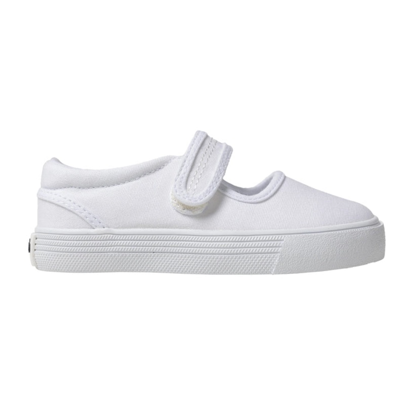 Introducing our White Jamie Sneakers, perfect for any little one's adventures!These Mary Jane style shoes feature a Velcro closure, making them easy to put on and take off.Get your child ready for fun and comfort with these adorable sneakers.