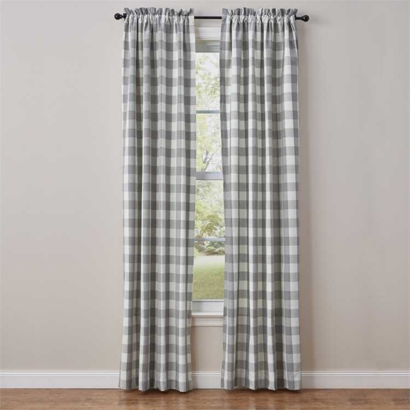 With a buffalo check pattern, these long, lined curtains are an easy way to add a cozy, rustic look to any room in the home. Adds a country chic feel while blocking out light and providing privacy. Set of 2 curtainsMeasures 72" x 84" Has a 1 1/2" header an