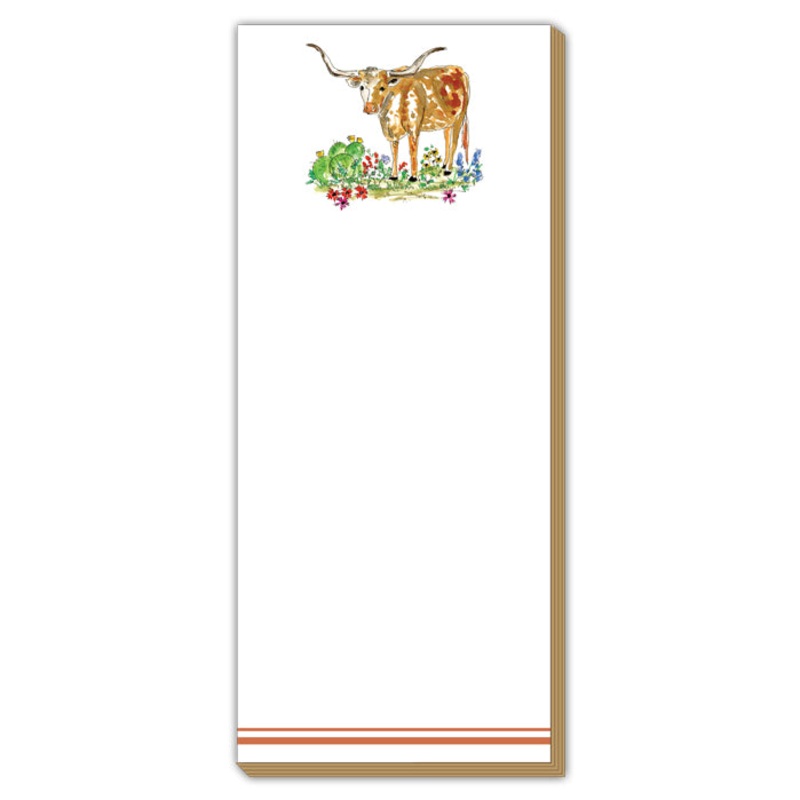The Luxe Skinny Pad has slimmed down for your longest lists. With gilded gold edges, heavy card stock and a coordinating ribbon, this notepad is one of our most popular items! As part of the Luxe Living Collection, this pad is part of a set of 7 coordinating notepads and planners.
