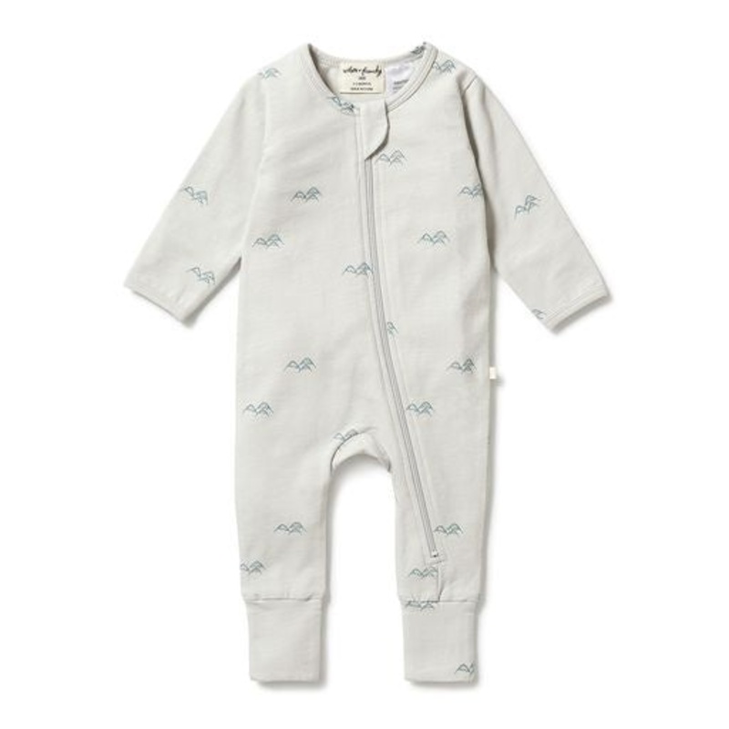 This fold-back cuff zipsuit by Wilson + Frenchy is a must have! Featuring a zip front for easy dressing and a protective neck facing zip cover. Made from a beautiful blend of organic cotton and elastane our zipsuits are practical and easy to wear with just the right amount of stretch for a comfortable fit that grows with your baby. Key Features: Round neckline with concealed zipper for safety. Long sleeve, full length. Fold back cuffs for hands on size 00000 – 000. Fold back cuffs for feet on all sizes. One-way zip opening for easy changes. Textured organic cotton Packaged in a compostable bag.