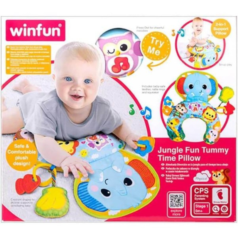 A cozy and supportive tummy time pillow that encourages babys development.Designed to provide comfortable support during tummy time sessionsSoft fabric cover with vibrant jungle-themed design to engage babys sensesPlush foam interior gentle yet firm for pr