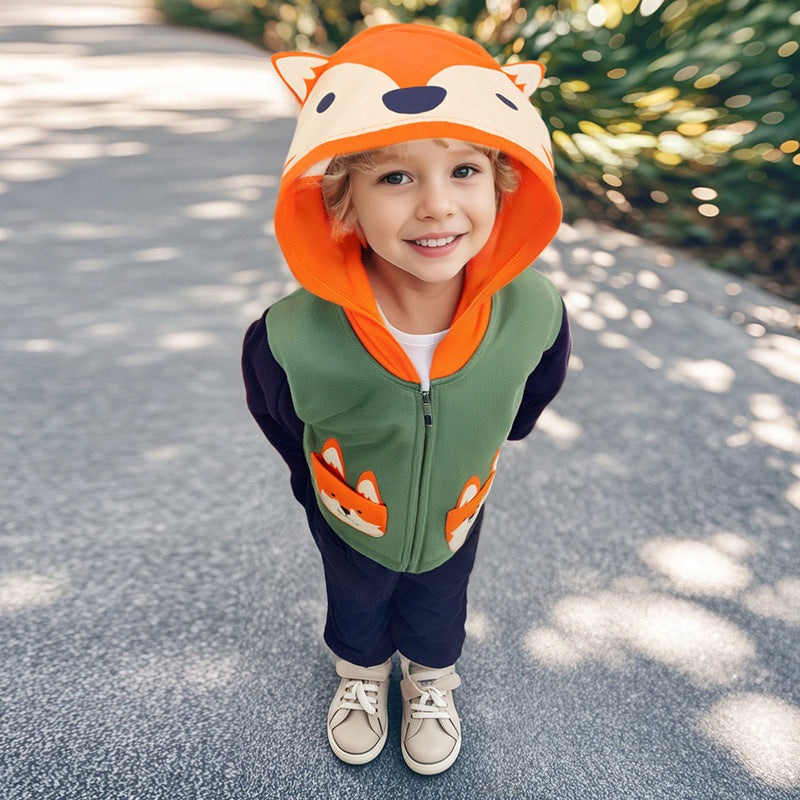 This boys coat combines playful animal motifs with practical design, perfect for chilly autumn and winter days. Crafted with long sleeves and a secure zip-up front, it offers reliable warmth and easy wear. The attached hood provides additional protection a