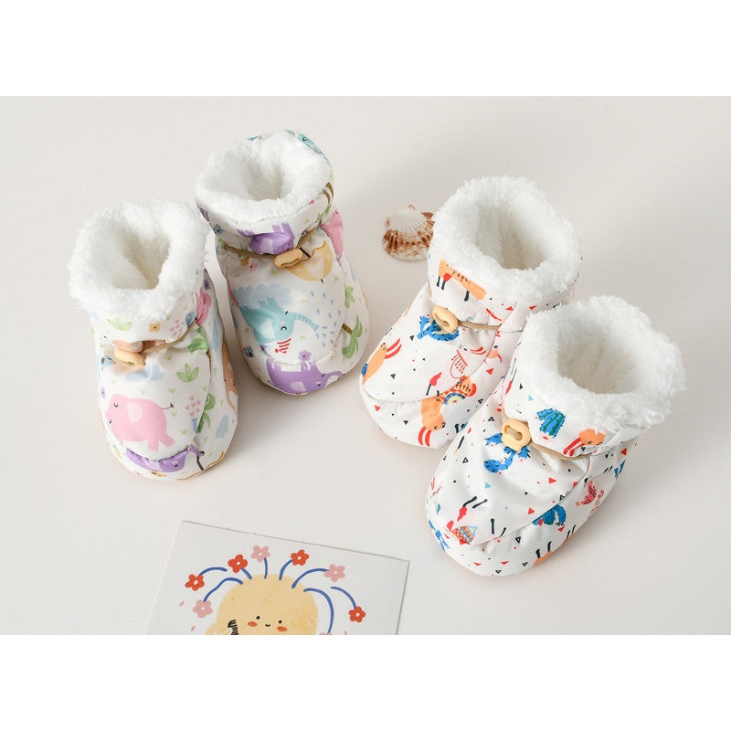 Keep your little ones feet cozy and safe with these Winter Arrival Baby Animals Toddler Shoes. Featuring a charming cartoon animal pattern, these cotton shoes are lined with soft fleece for warmth. The anti-slip soles provide extra grip, perfect for early