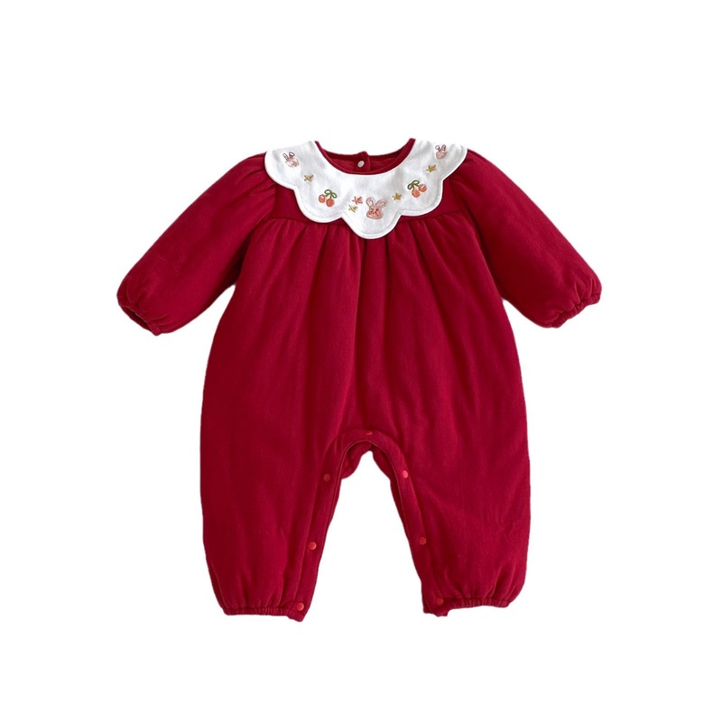 Keep your little one cozy and adorable this winter with our warm padded romper, featuring charming embroidered rabbits and colorful fruits. Designed for comfort and warmth, this thick romper is perfect for chilly days, making playtime snug and fun. Its pla