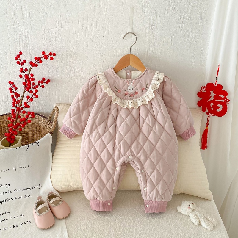 GWIL528532841Winter Arrival Baby Girls Simple Rabbit Embroidered Pattern Warm Padded Thick Romper