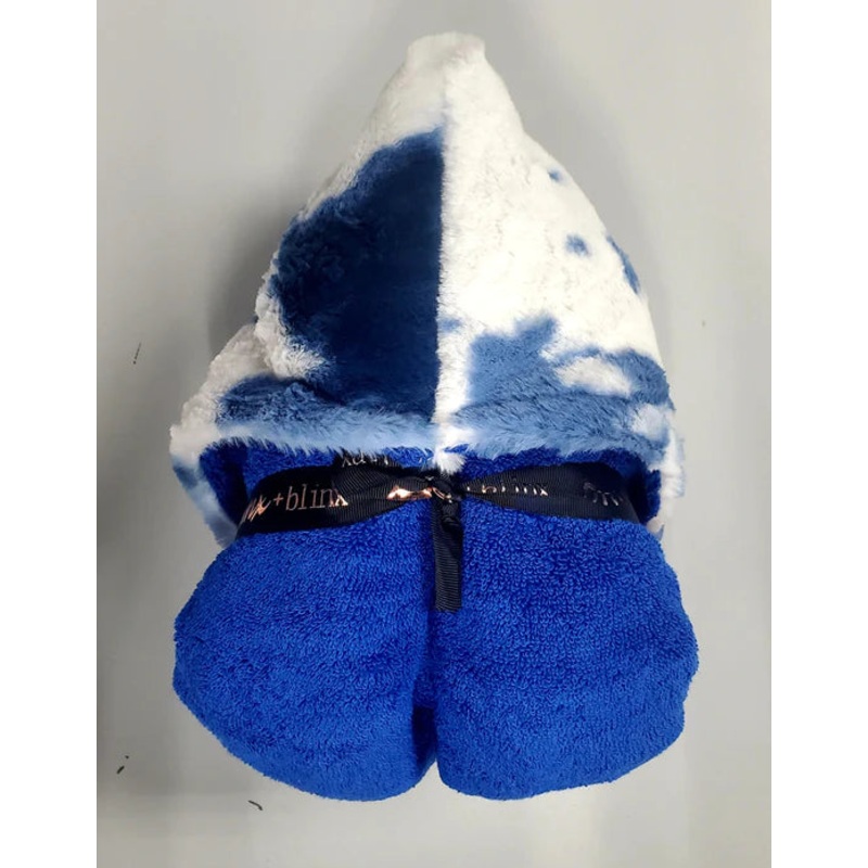 Blue towel withwhite/blue fur hood.CottonMade in USADesigned for maximum comfort, durability and absorbanceFun, stylish and makes for the perfect gift100% Top Quality Natural Cotton Terry100% Designer Cotton Hood w/ Natural Cotton Terry ReverseTowel Size -