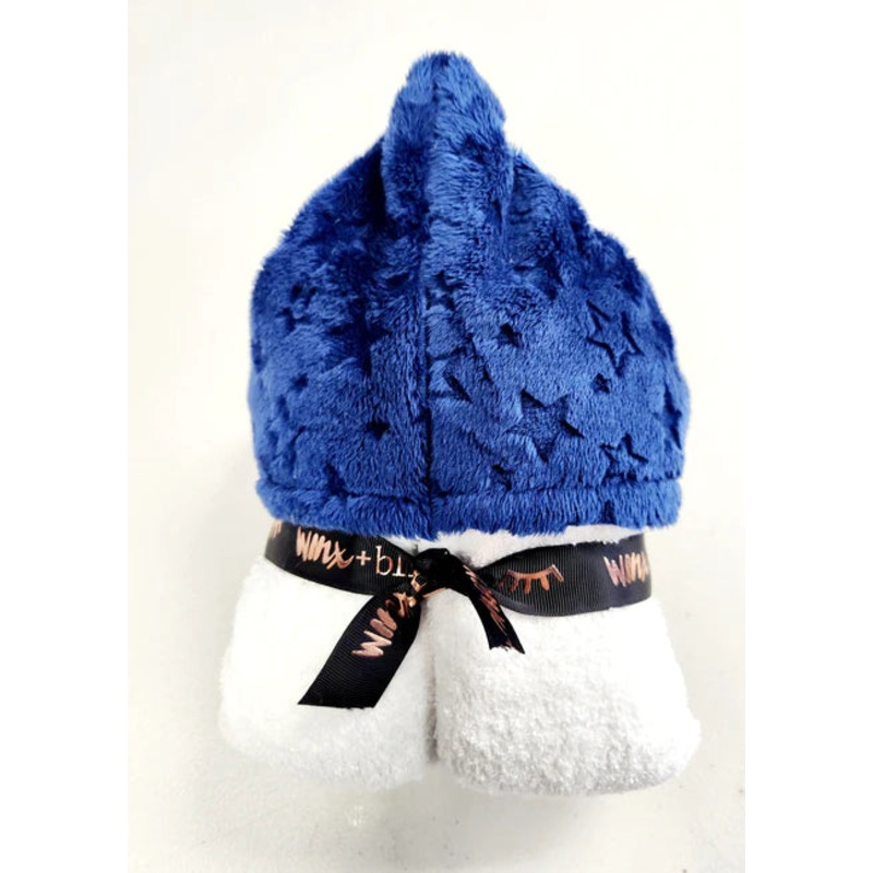 White towel withblue fur hood.CottonMade in USADesigned for maximum comfort, durability and absorbanceFun, stylish and makes for the perfect gift100% Top Quality Natural Cotton Terry100% Designer Cotton Hood w/ Natural Cotton Terry ReverseTowel Size - 54 x