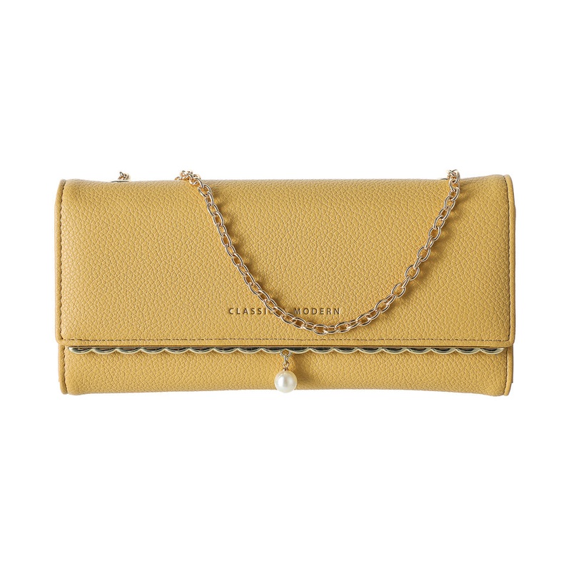 Women’s Long Crossbody Bag with Imitation Pearl (Yellow)