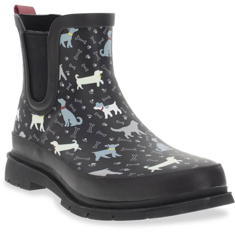 Made to brighten rainy days, Women's Dog Day Chelsea Rubber Boot 21206947P features a playful pup print on a waterproof rubber upper with easy slip-on elastic panels. Lined with moisture-wicking fabric and finished with a grippy lug outsole, it delivers bo