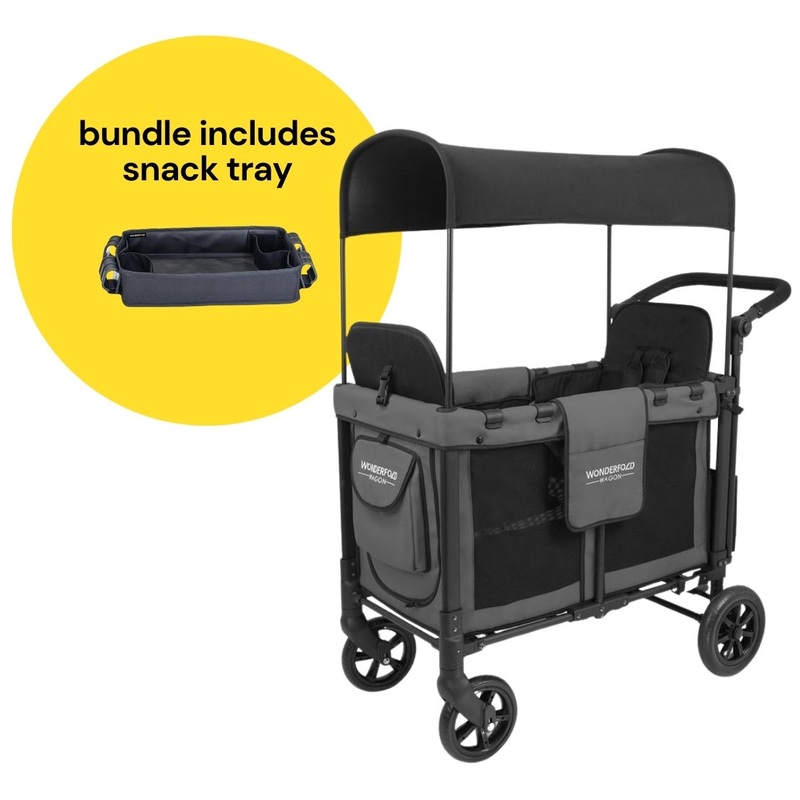 The perfect stroller wagon for all of your adventures.Features:Holds up to 2 passengersEasy to fold/unfoldHigh face-to-face seats with footwell for better interactionsDeep carriage with mesh panels for optimal ventilationFront zipper door for easy access/s
