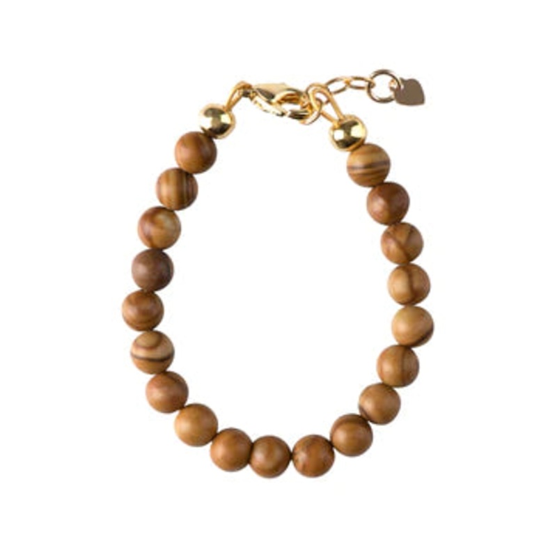 Wood grain stonebeadsMatching stacker bracelets collection availableGold heart attached to last loopGift bag included