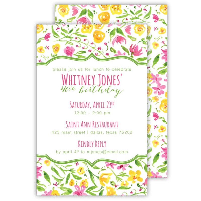 Yellow Floral Border Large Flat Invitation