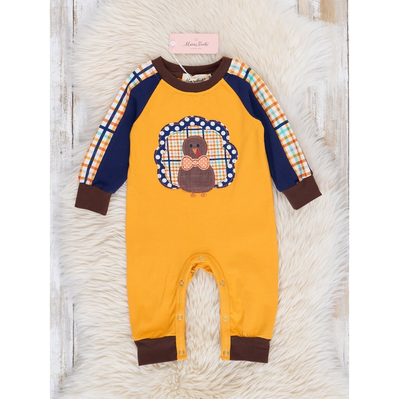 Be the first to review “Yellow Plaid Embroidered Turkey Romper”