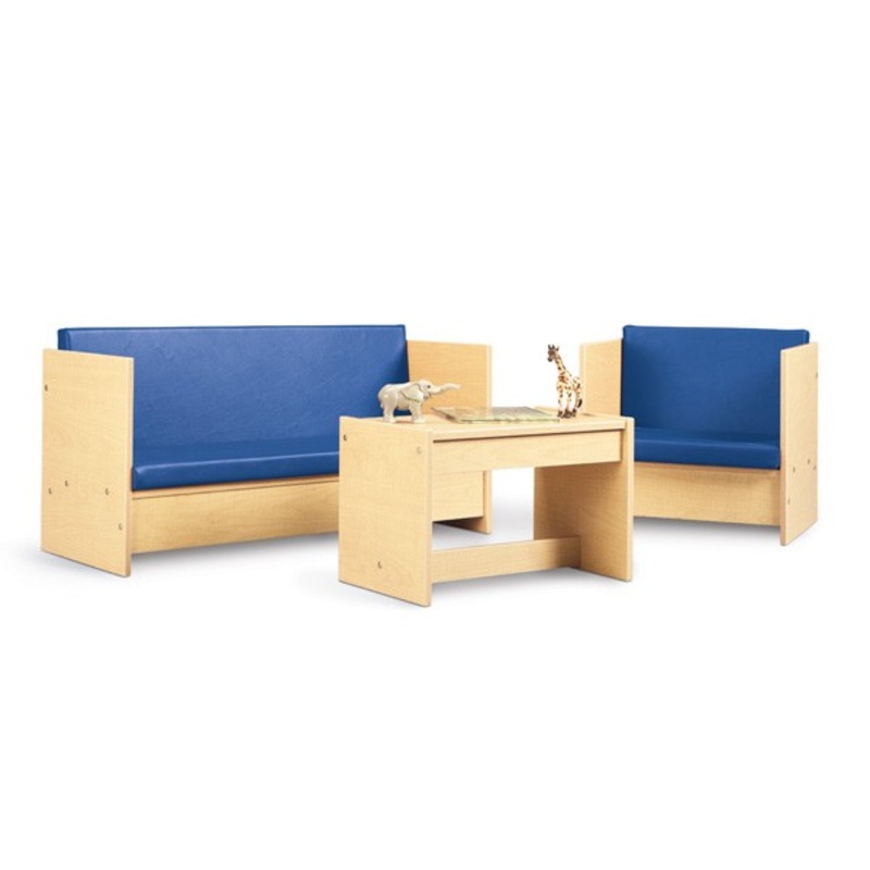 This living room chair is well-suited in both dramatic play and literacy settings. Includes 1.5″ blue cushions. Ready-to-assemble. Lifetime warranty. CPSIA and CARB compliant! Made in the USA! Chair only. 21 lbs. 18.5″ High x 19.5″ Wide x 15.5″ Deep.