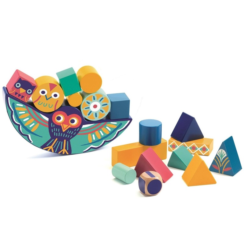 A delightful wooden rocking owl stacking and balancing game. This is a great way for your child to explore their agility and eye-to-hand coordination. Roll the dice and stack the shaped blocks onto the rocking owl. Young children will love seeing how high they can stack the blocks, but will it tumble? Will they get all the shapes balancing? Ideal for social and individual play. For ages 3 and up. For 1-2 players. WARNING: CHOKING HAZARD – Small Parts. Not for children under 3yrs.