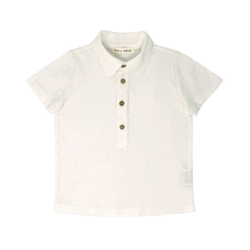 zhoe & tobiah white polo shirt crafted from premium cotton. this classic piece features a sophisticated collared design and buttons on the front.