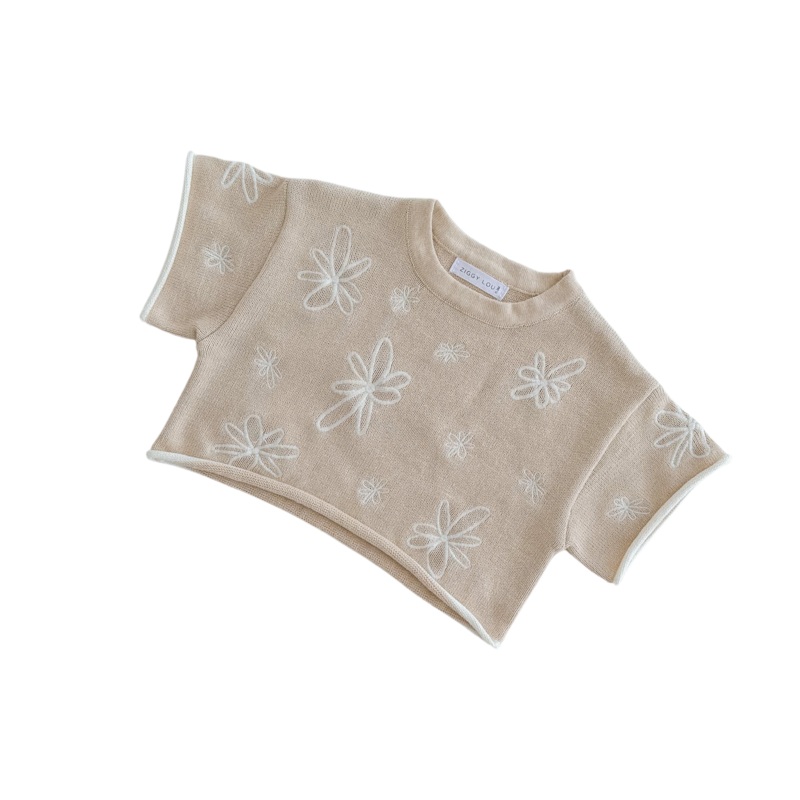 By Ziggy LouKnitted cropped tee in Latte featuring our embroidered Gia design in Milk.Mix and match with items from our Gia + Cappuccino Summer Collections.Size ||| TTS, cropped fit.Composition||| 100% Cotton.Care||| Cold gentle machine wash in delicates b